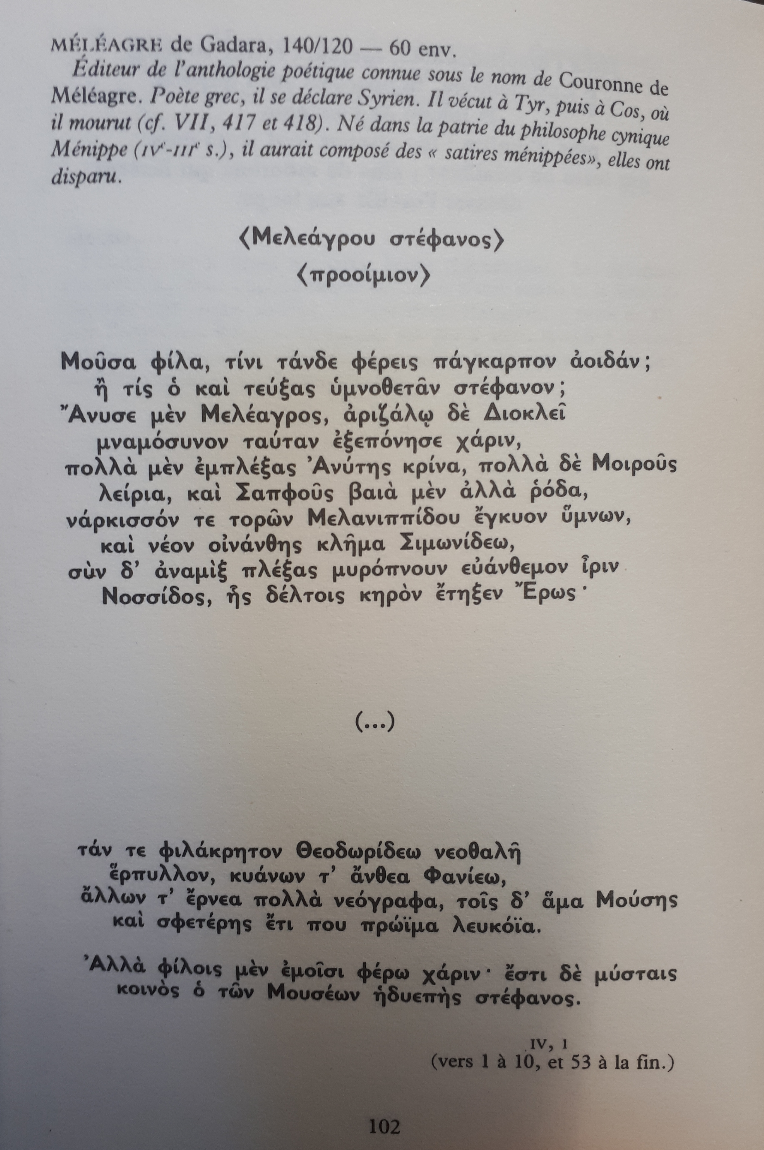 Préambule de la Couronne de Méléagre